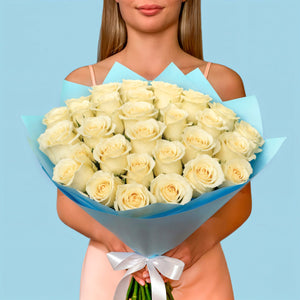 Buy 35 Premium White Roses bouquet for your occasion. The best present is the beautiful bouquet.